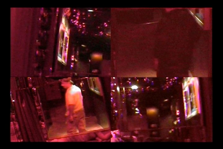 While working in a peepshow window, I made my "work" that of the voyeur and set up spy cameras to record the customer traffic. I then edited the footage into a 4-screen, CCTV Surveillance System format.