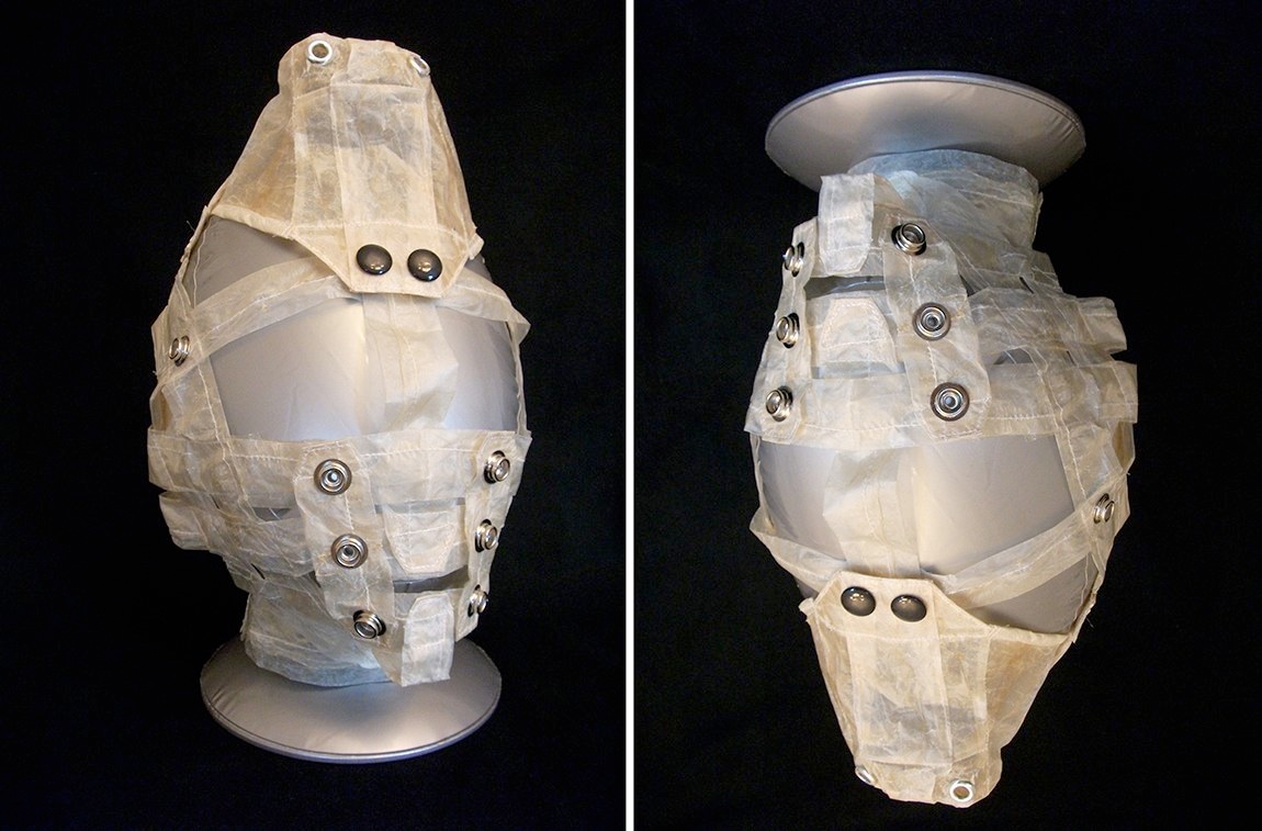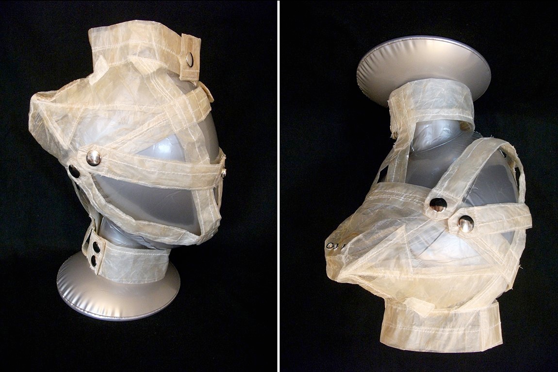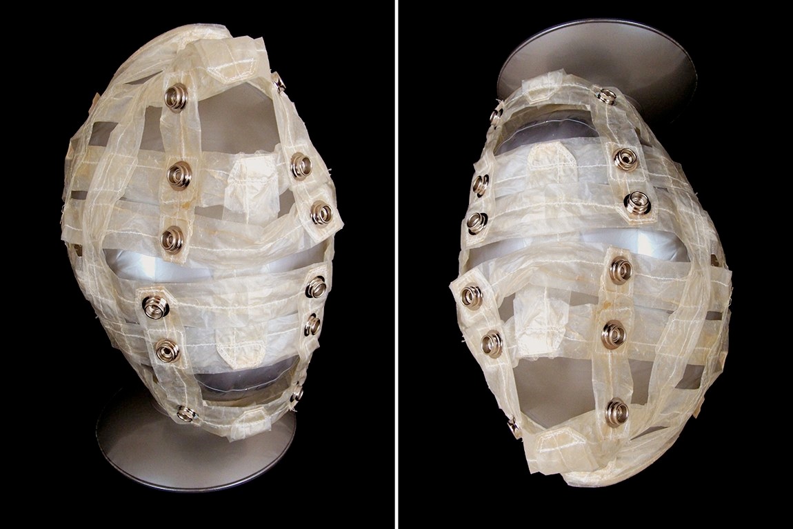 Armor #4, 2011, 11 in x 22 in x 24 in, invertible, wearable sculpture made from sewn hog gut & hardware