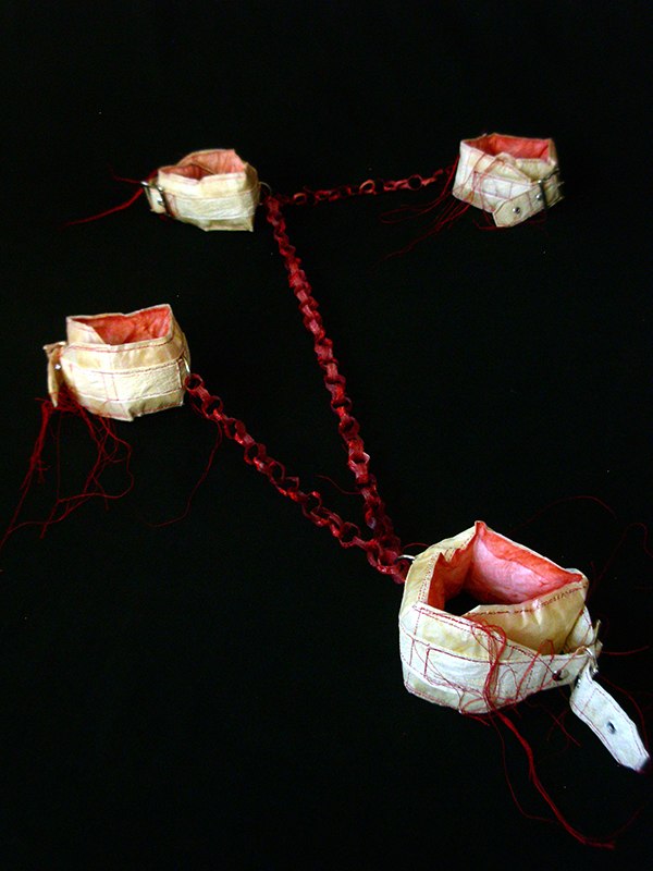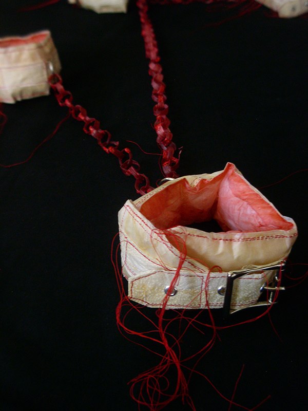 Restraint, 2011, dimensions variable, dyed & sewn hog gut and hardware